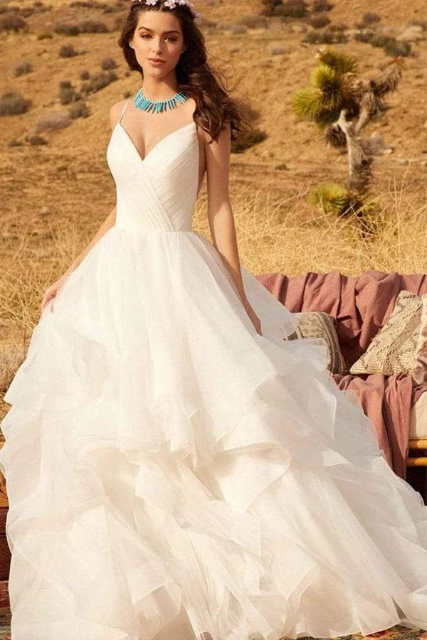 Boho unique voir à travers une robe de mariée de campagne rustique trapèze