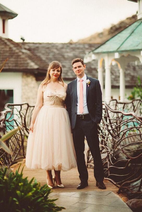 Abordable Nude Bustier Thé Longueur Country Style Rustique Robe de Mariée Années 50