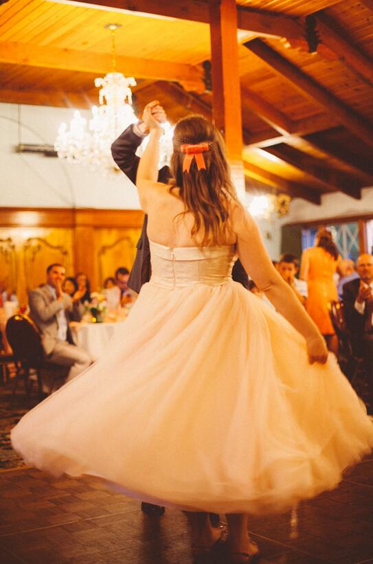 Robe de mariée trapèze plissée sans bretelles style années 50 champagne