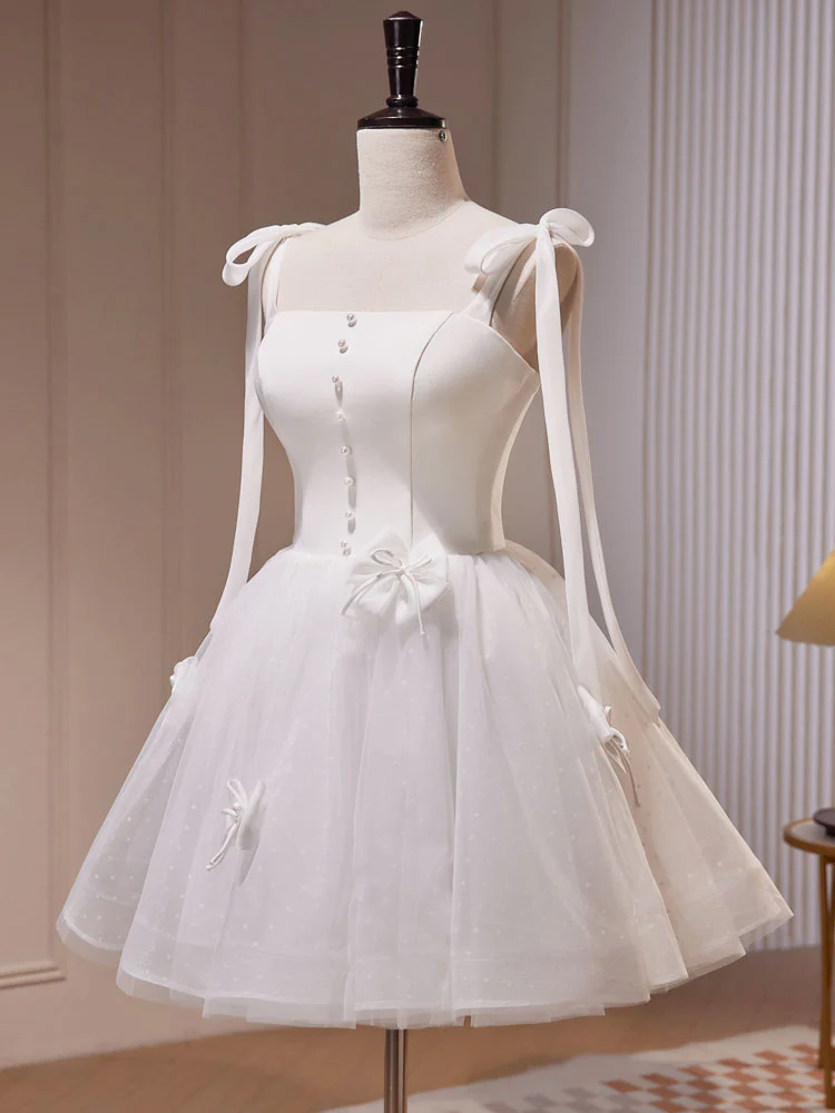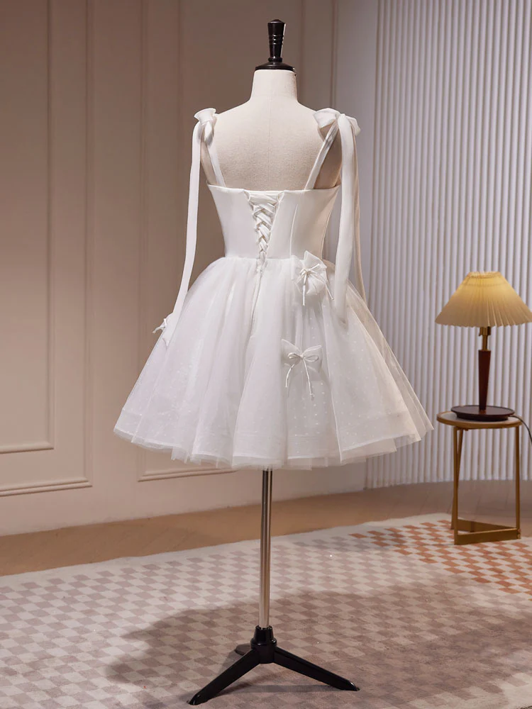Robe de bal courte en tulle blanc A-Line, jolie robe de bal blanche