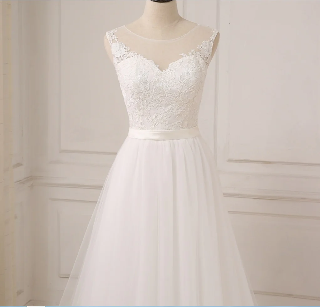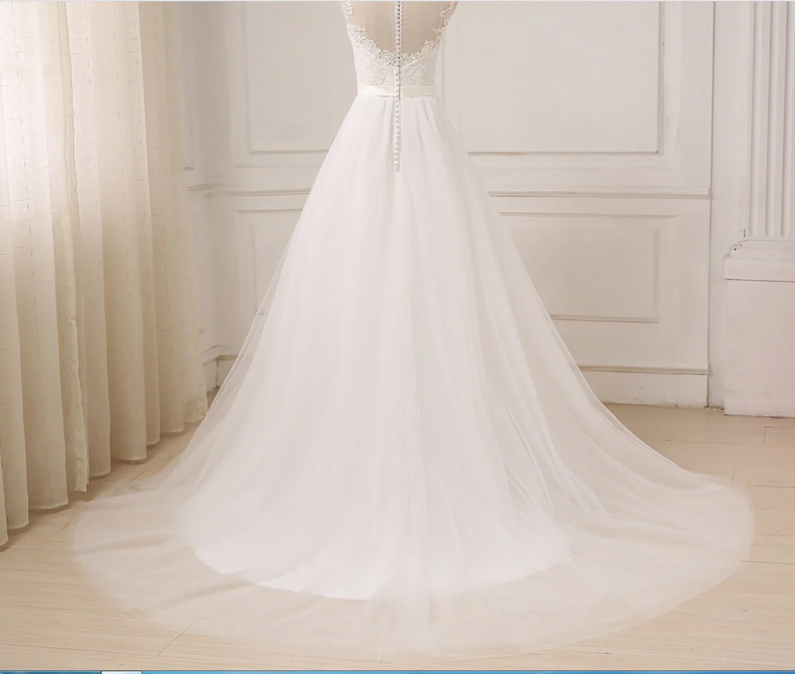 Boho bijou cou Tulle a-ligne dentelle haut robe de mariée fluide été plage robe de mariée