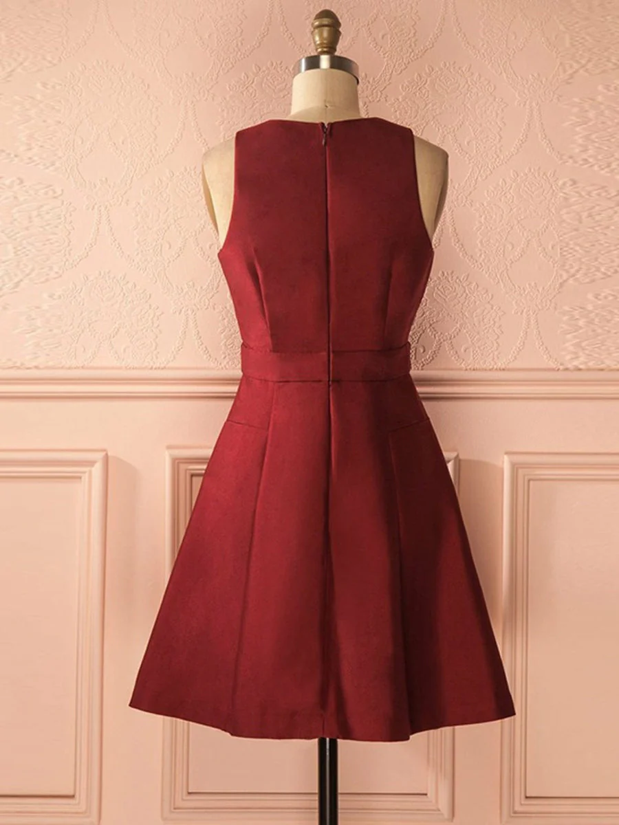 Burgundy Satin Short Prom Dress A-Line V-Neck Homecoming Dress
