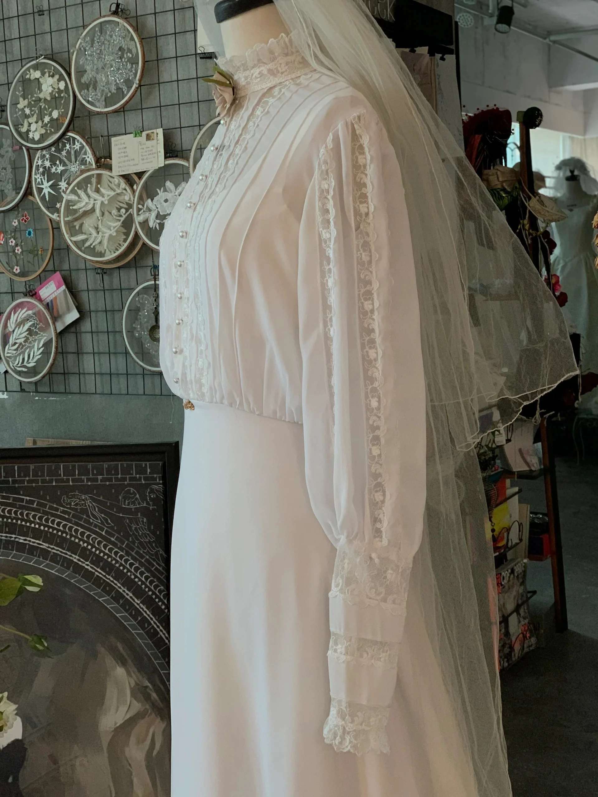 Chiffon Modest Vintage Wedding Dress with Long Sleeves