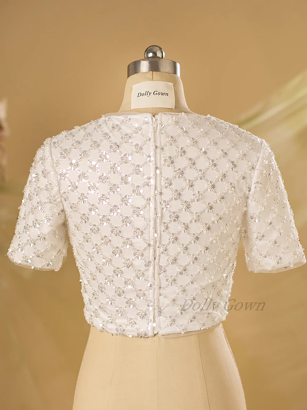 Elegant Short Sleeved High Neck Bridal Separates Top decorated with Plaid Beads Material