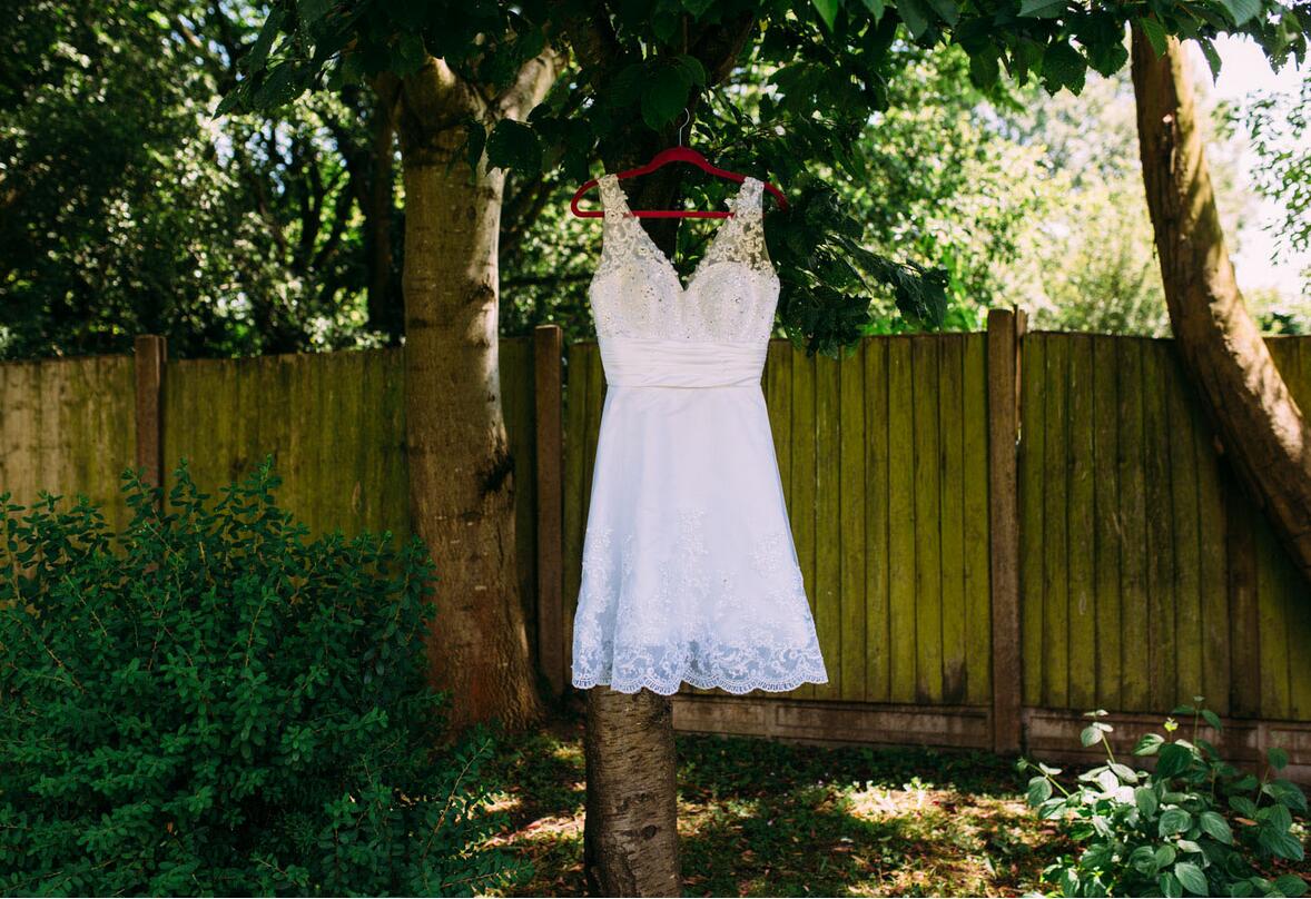 Col en V dentelle Appliques courte robe de mariée de style campagnard vintage