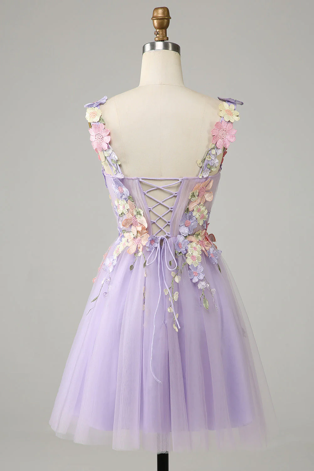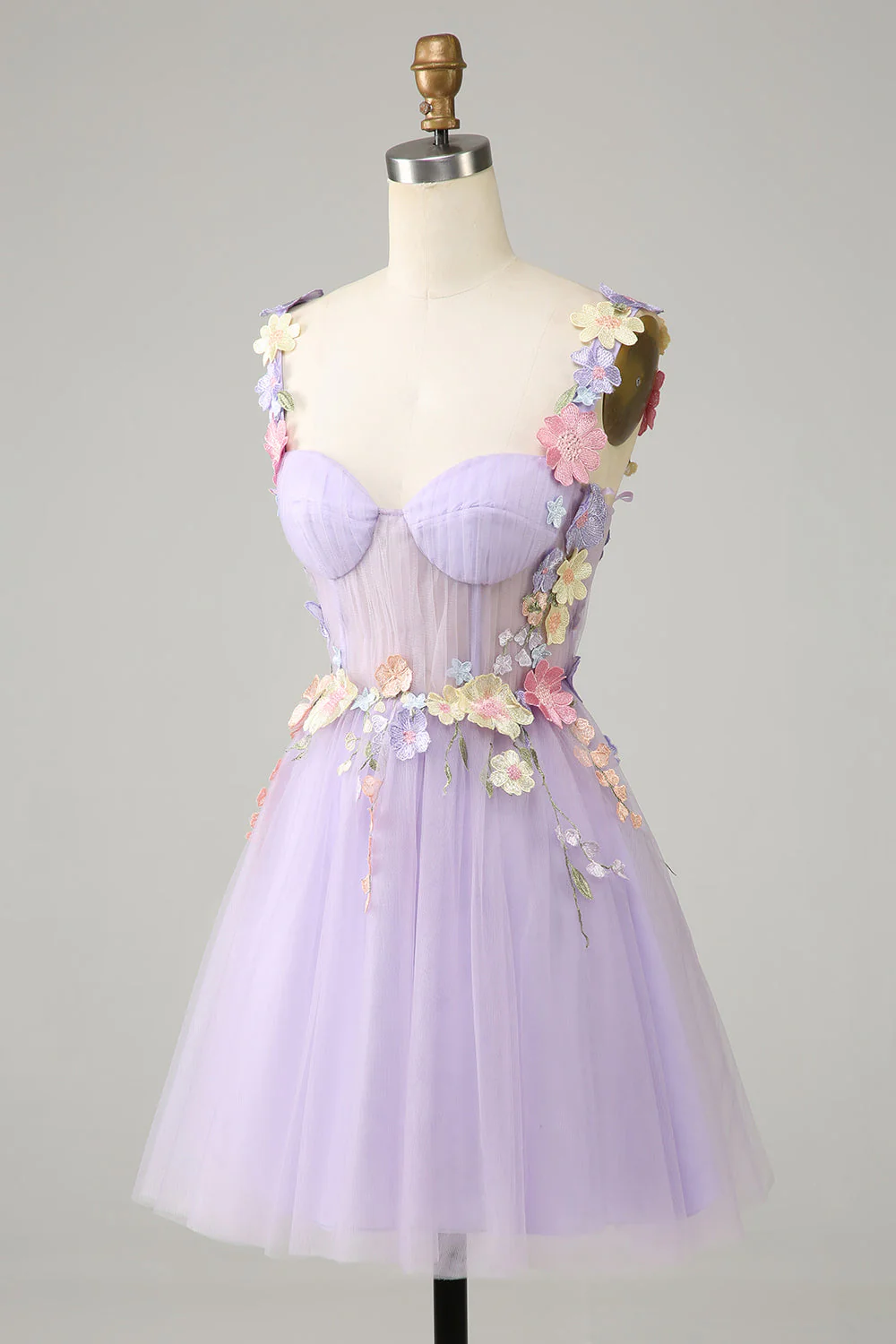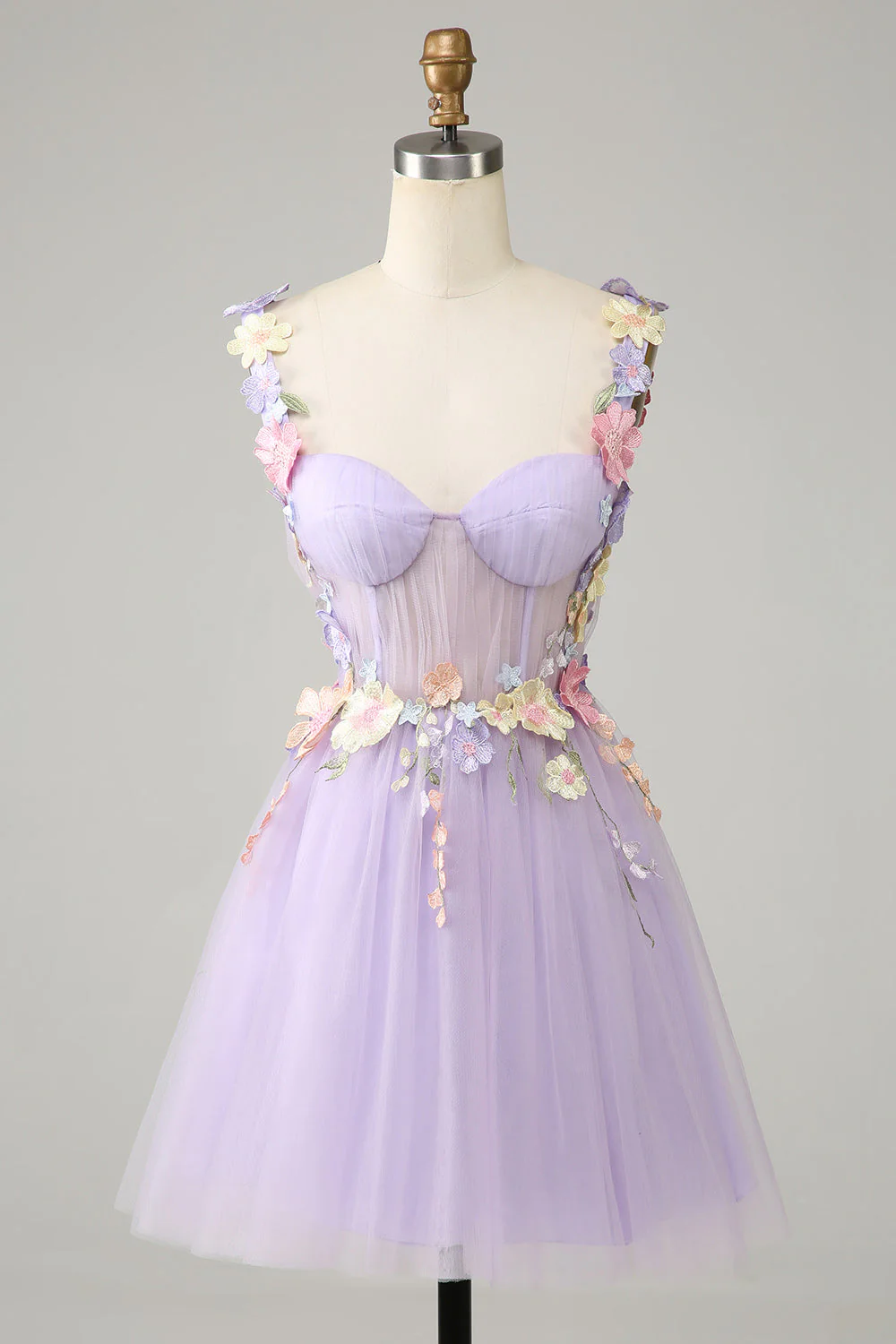 Colorful 3D Floral Sweetheart See Through Liac Homecoming Dress