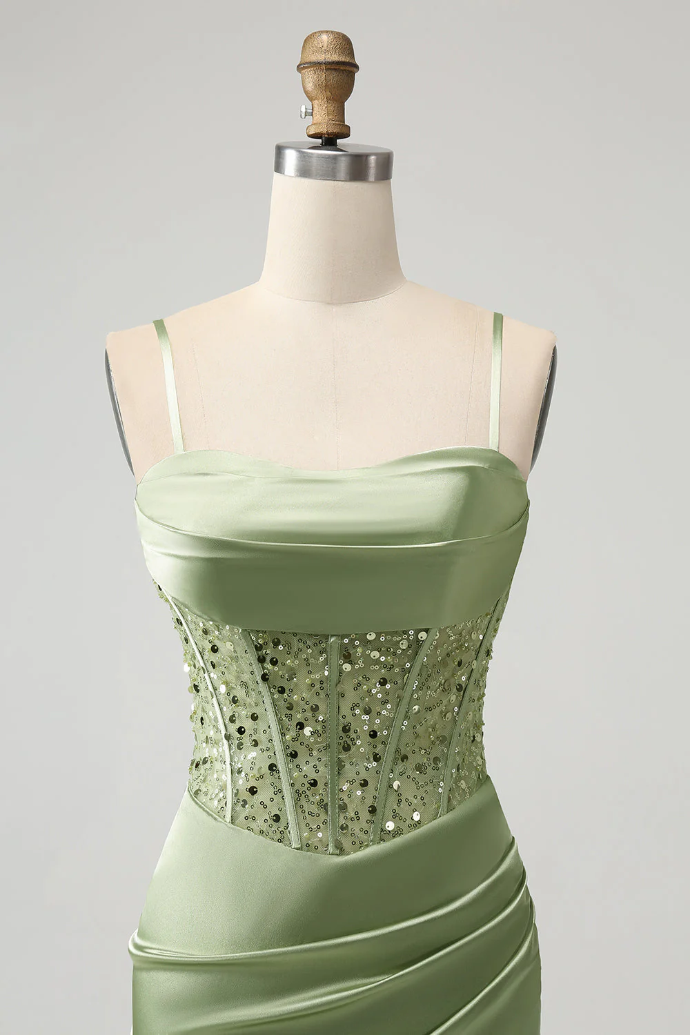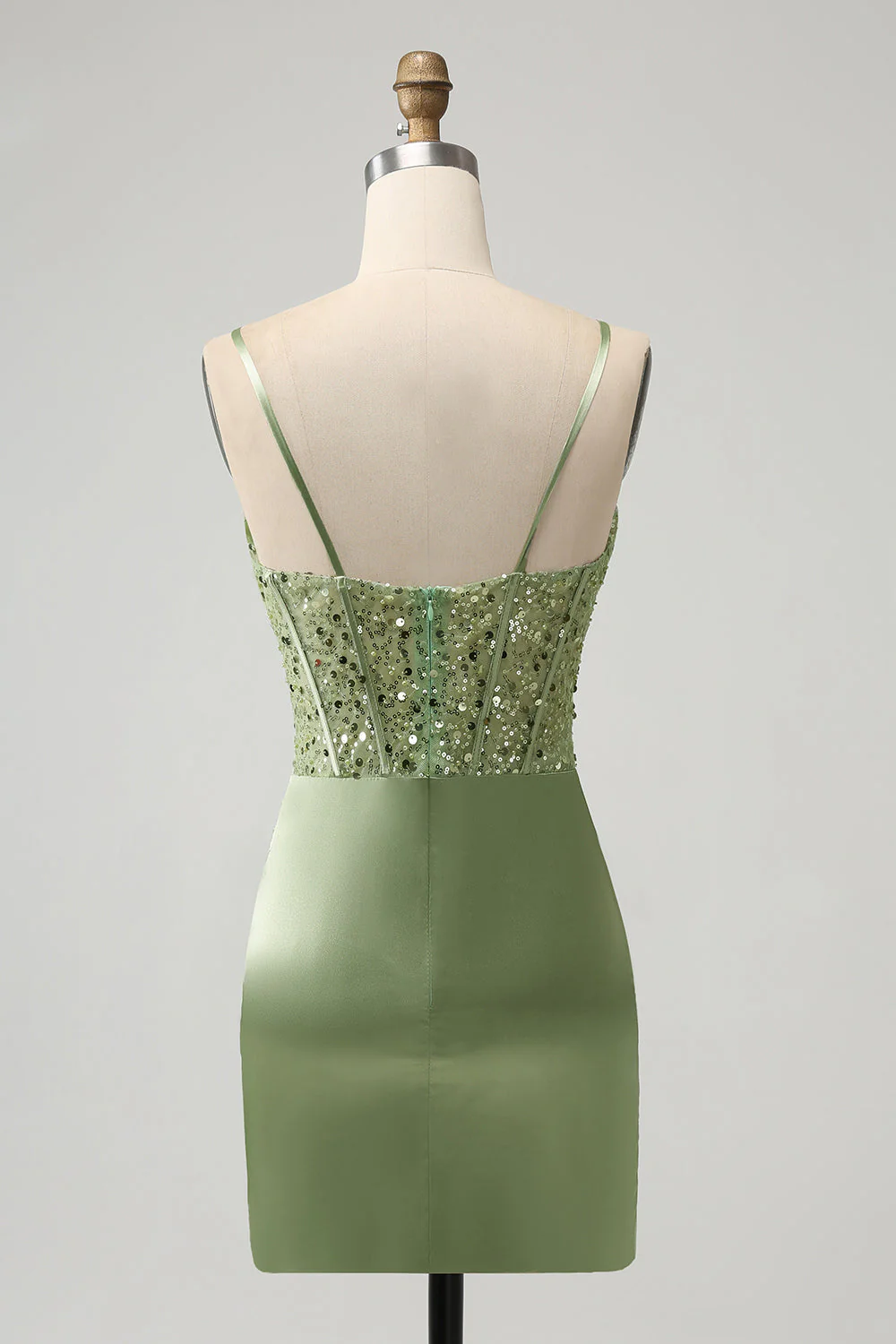 Corset Sequin Mini Homecoming Dress in Sage Green
