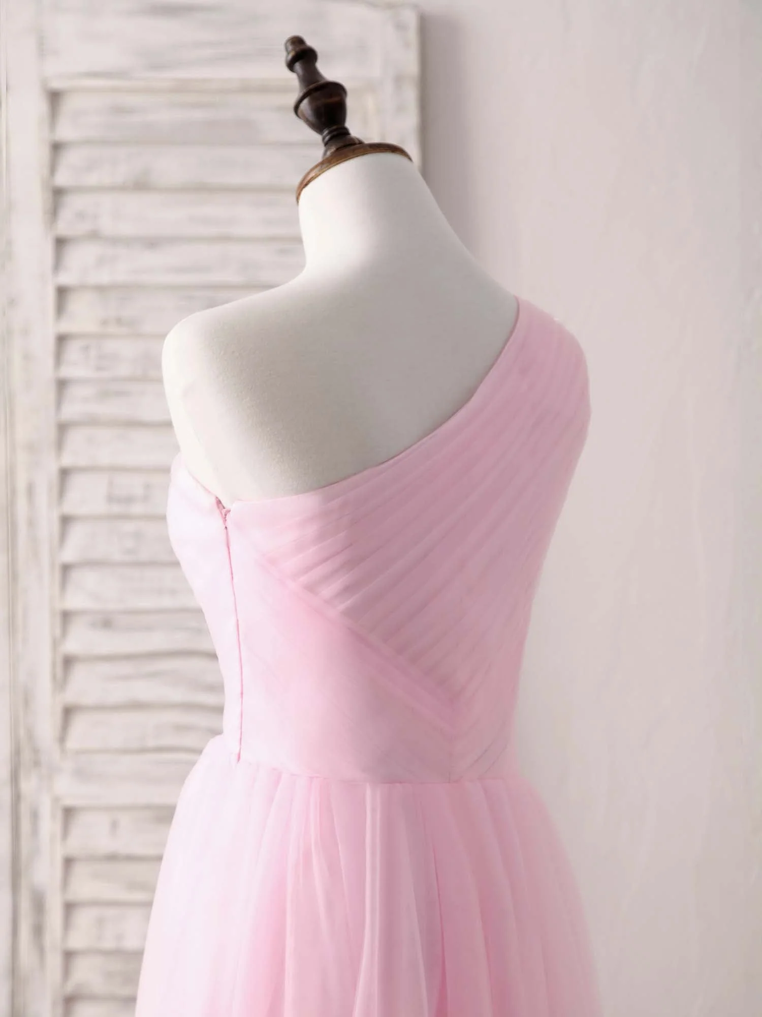 Twirl into any special occasion with this enchanting pink tulle gown. Its elegant one shoulder design offers a modern twist on classic sophistication. Crafted from delicate tulle, this dress flows beautifully, ensuring you’ll feel like a dream. It’s the perfect choice for proms, weddings, or any moment where you want to shine with effortless grace.