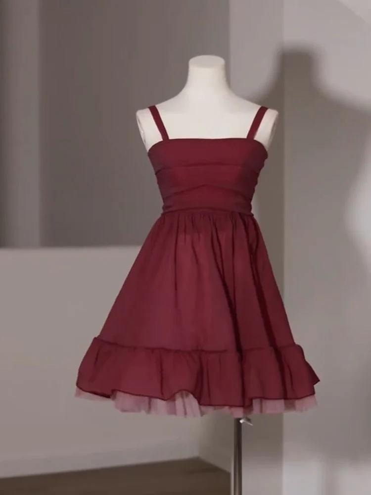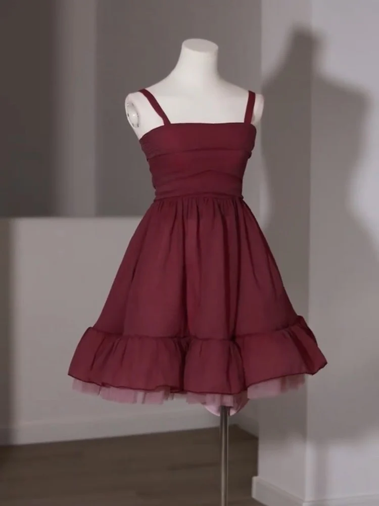 Adorable robe de soirée courte en mousseline de soie bordeaux