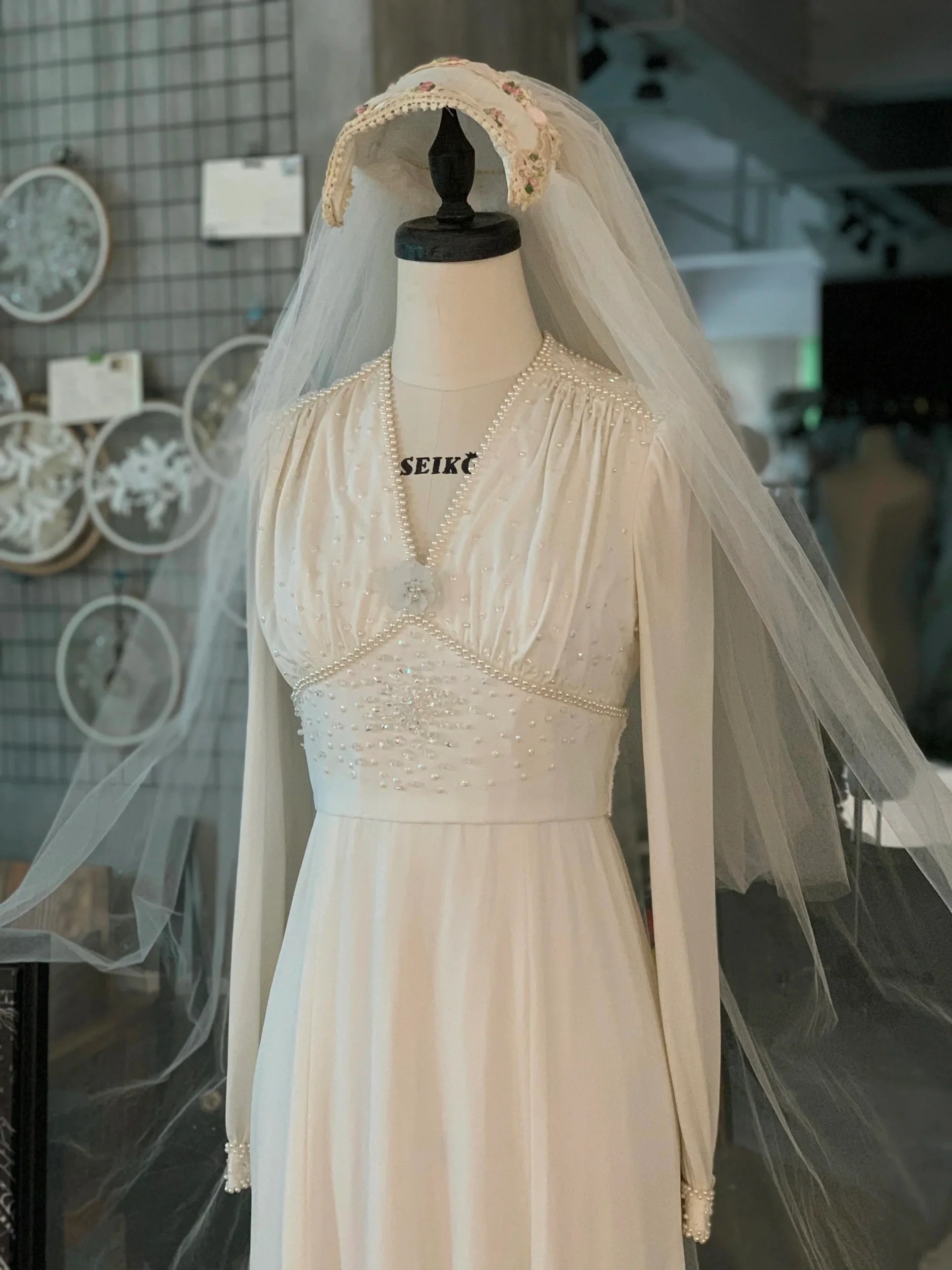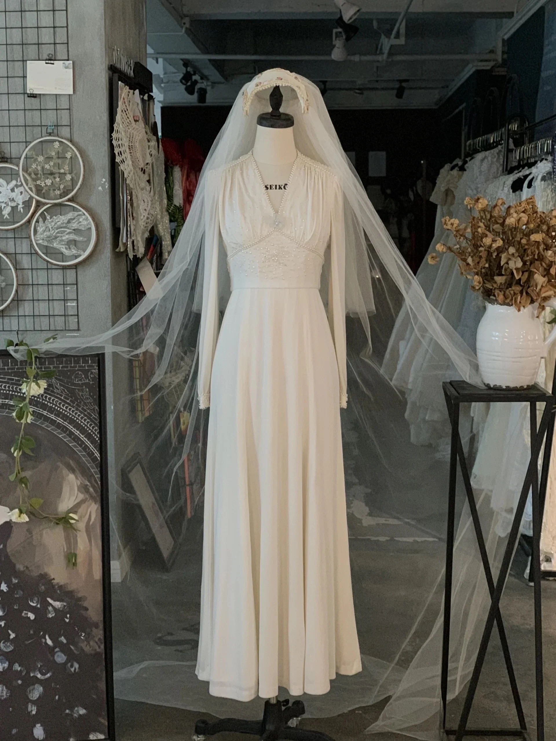 Long Sleeves 70s Modest Vintage Wedding Dress