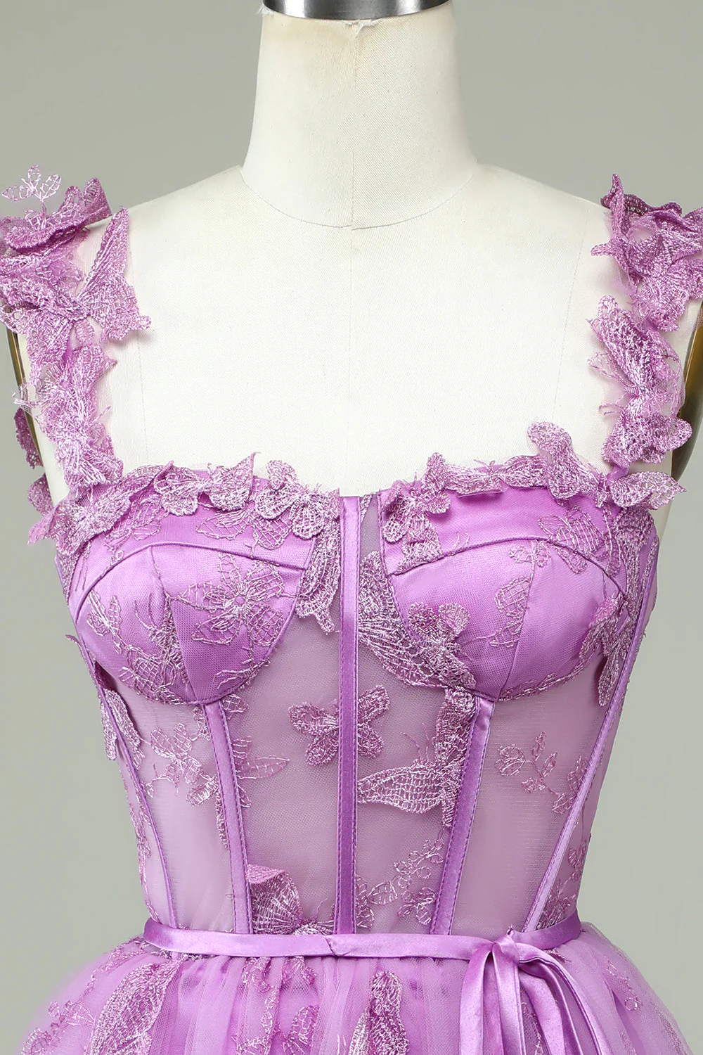 Magenta Butterfly Lace Corset See Through Homecoming Dress