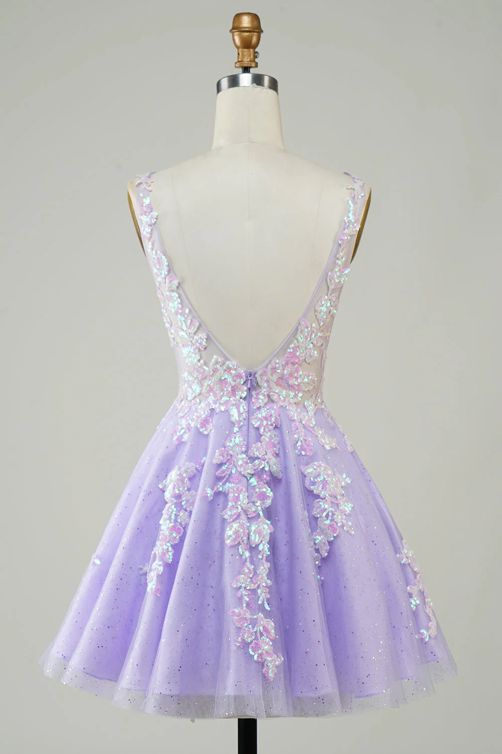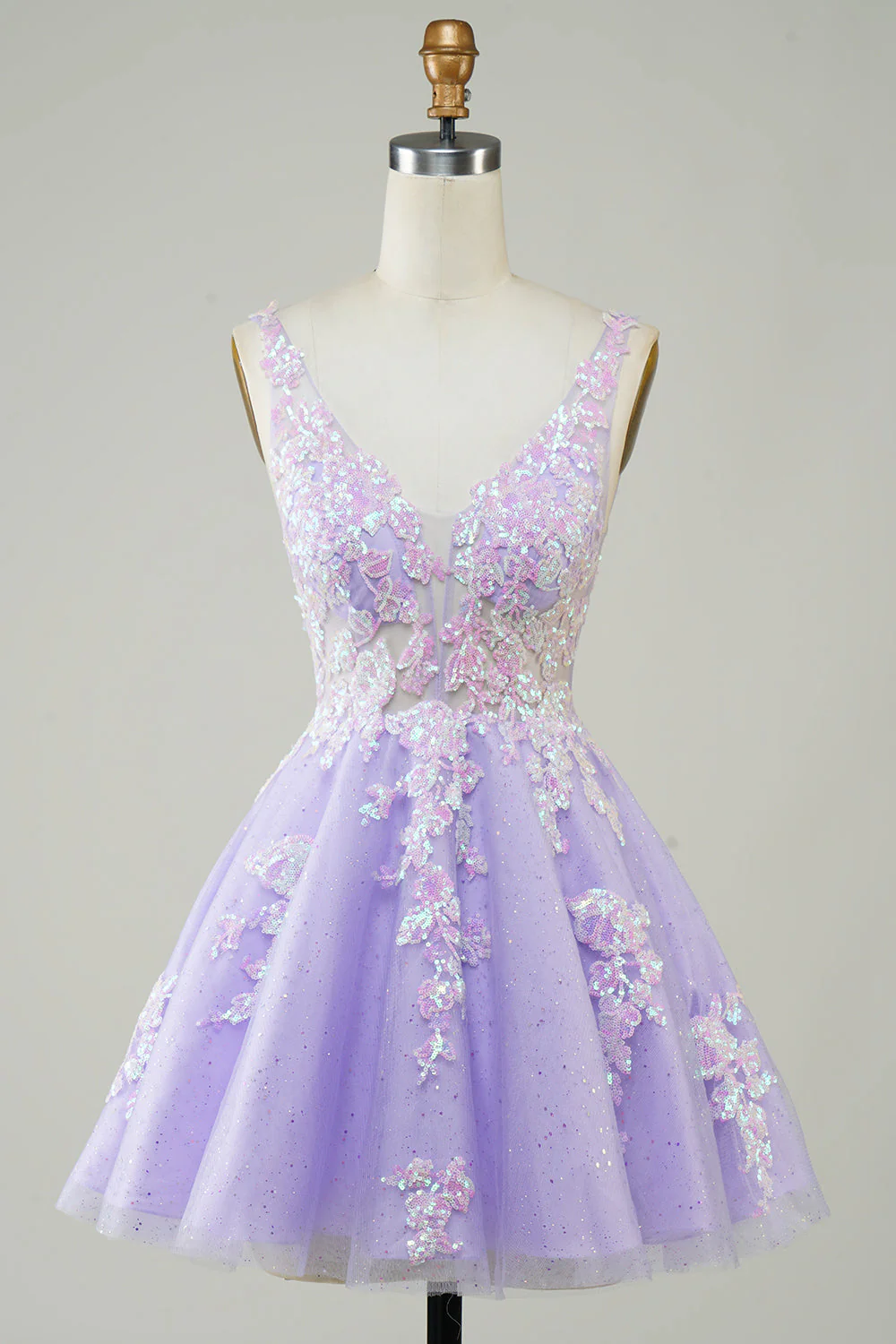 Unleash your inner sparkle with our Orange Glitter Applique V-Neck A-Line Homecoming Dress. Featuring a flattering V-neck and back, eye-catching glitter appliques, and a fun and flirty A-line silhouette, this short dress is perfect for homecoming or any special occasion. Shine bright and make a statement with this dress that is sure to turn heads!