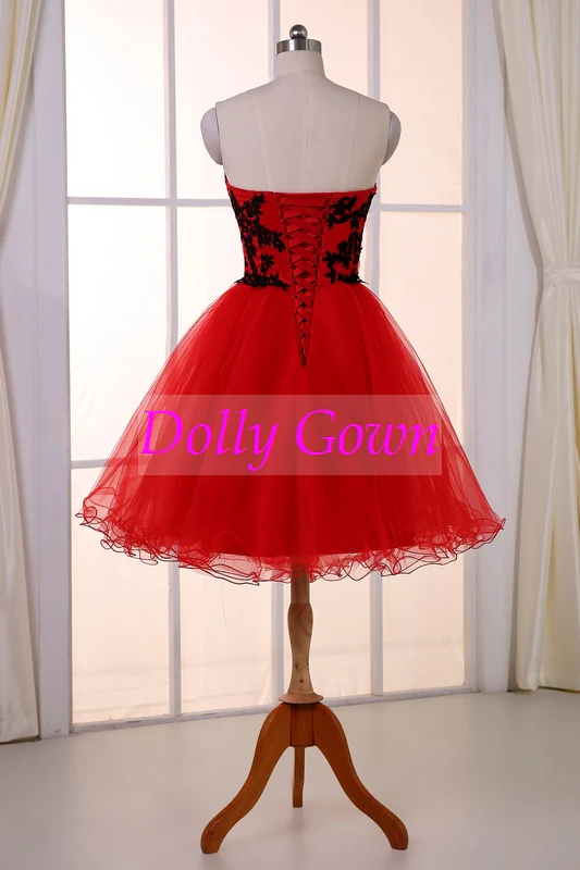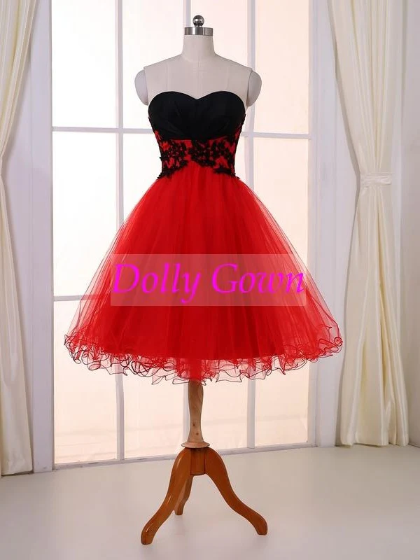 Robe de soirée courte en tulle rouge sans bretelles unique Matériel: Tulle Décolleté: chérie Longueur: Longueur du genou Style d’embellissements: appliques de dentelle Type de manche: sans manches Silhouette: A-ligne Occasion: bal, formel, fête Couleur de la photo : rouge (pour les autres couleurs, écrivez la note de commande) Soutien-gorge et os intégrés