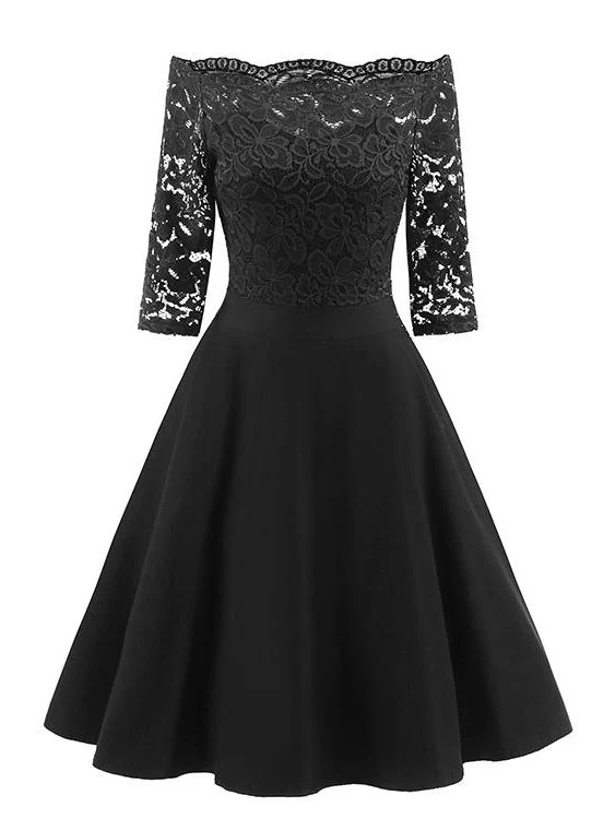 Robe de soirée noire style années 50 avec haut en dentelle et épaules dénudées