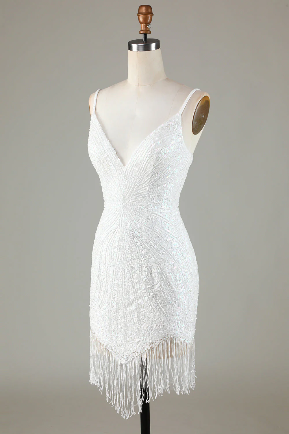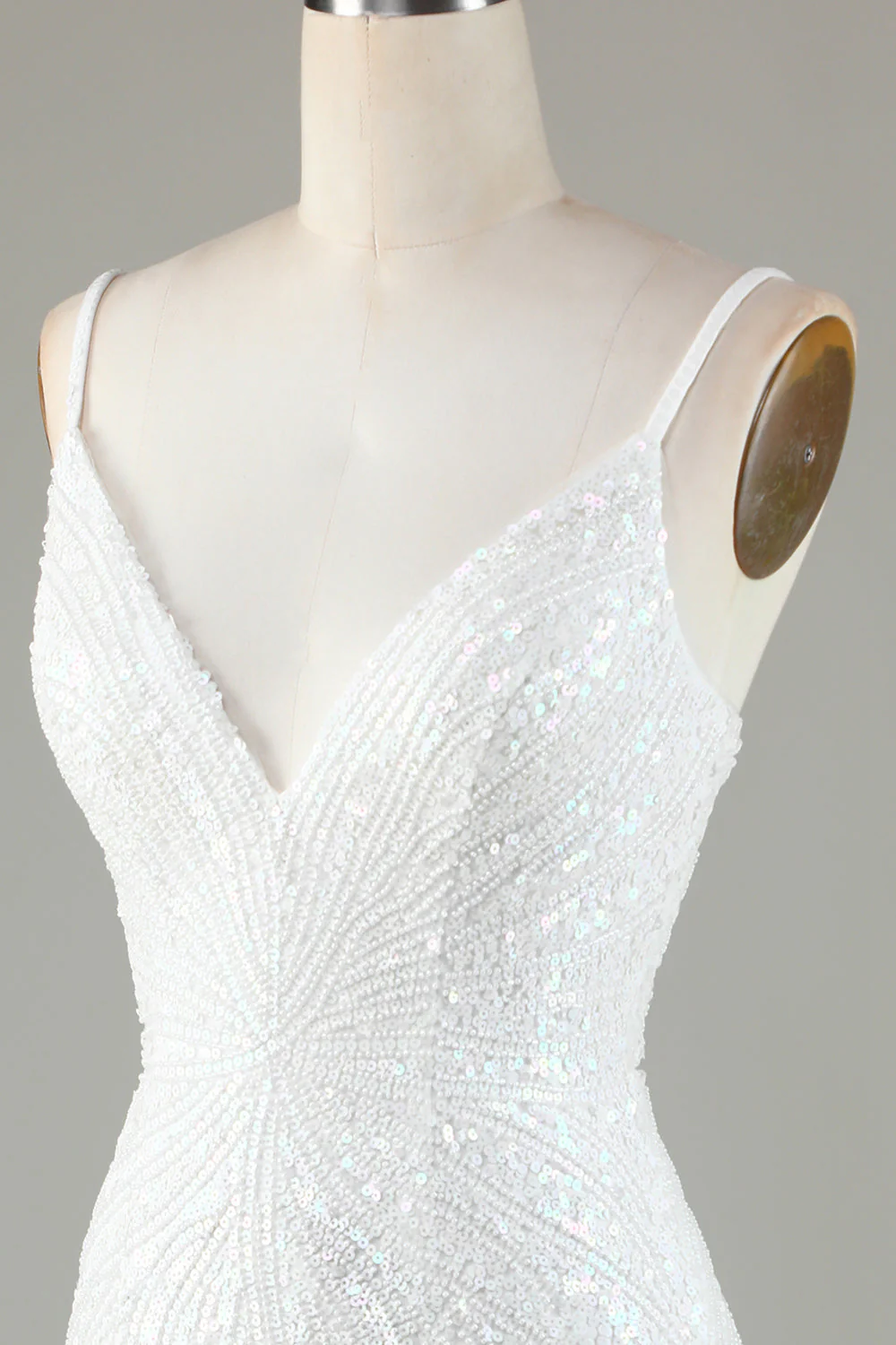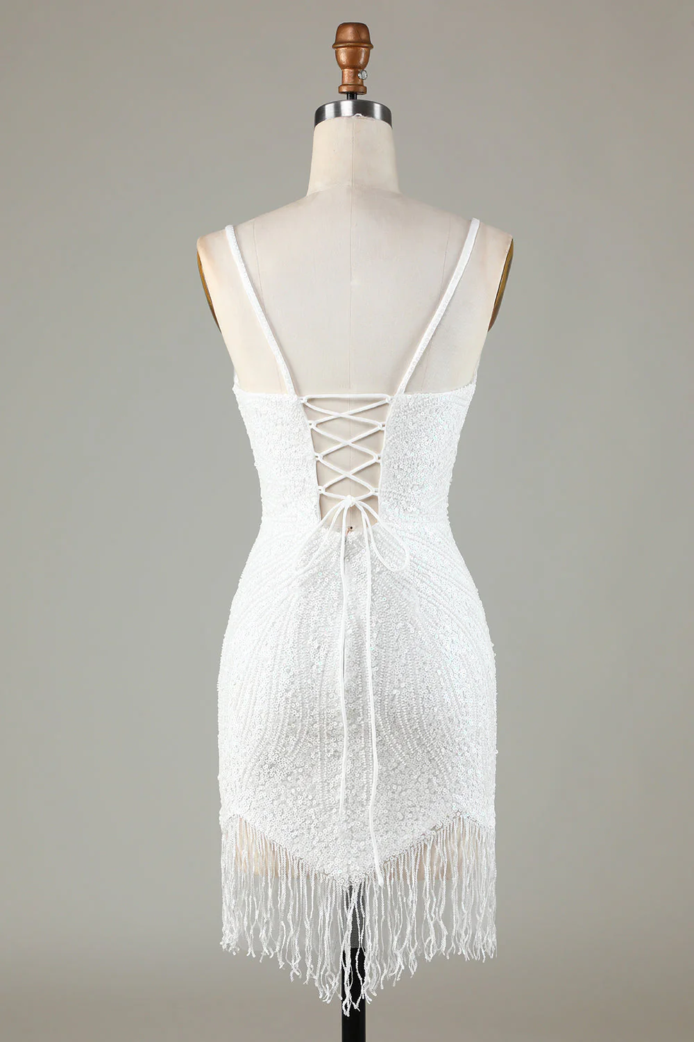 White Spaghetti Strap Sparkly Bodycon Homecoming Dress with Lace-Up Back